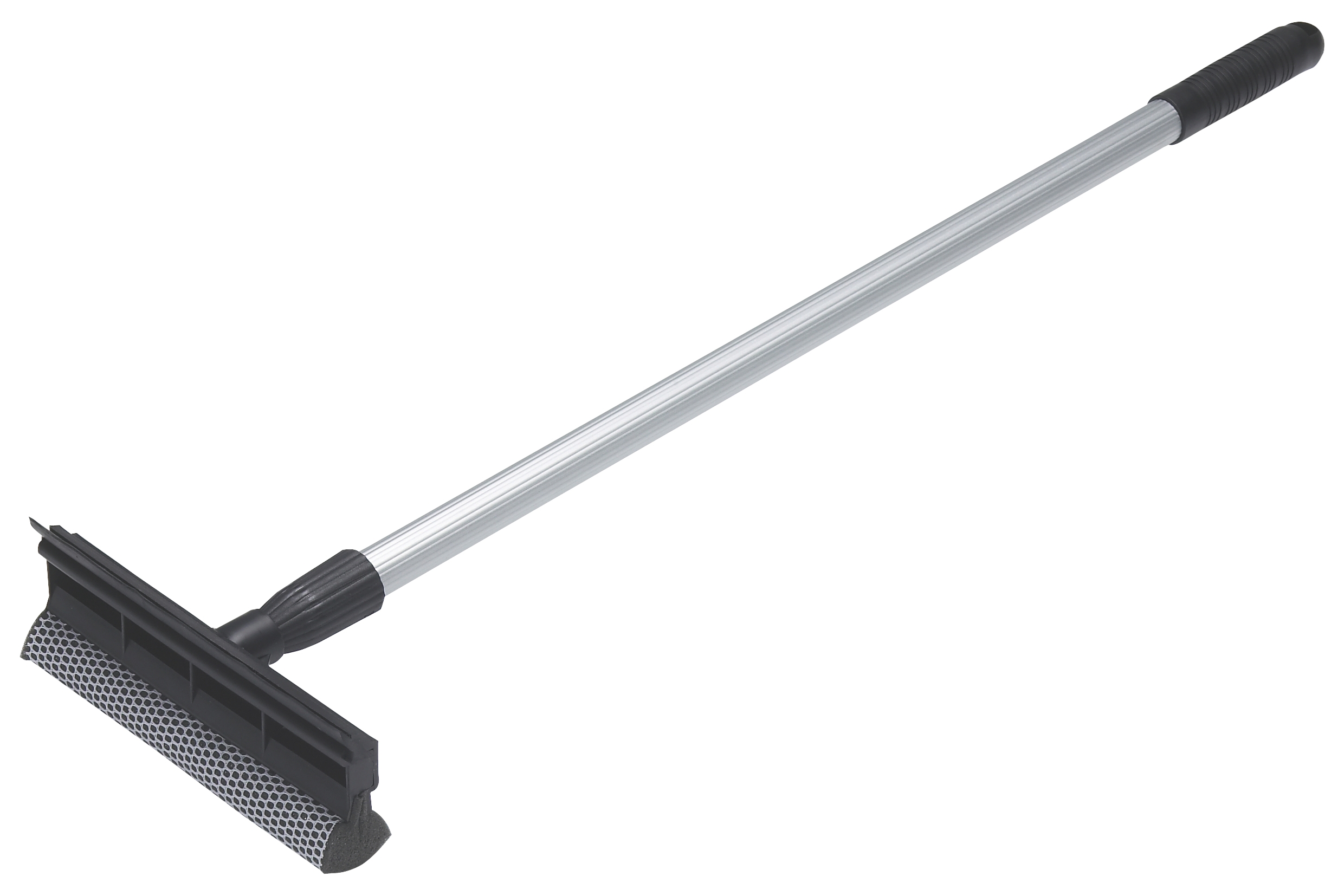 Gummiskrapa med förstärkt tvättsvamp, idealisk vid tvätt av fönster och vindrutor på fordon. Avlägsnar effektivt insekter. Teleskopiskt skaft.